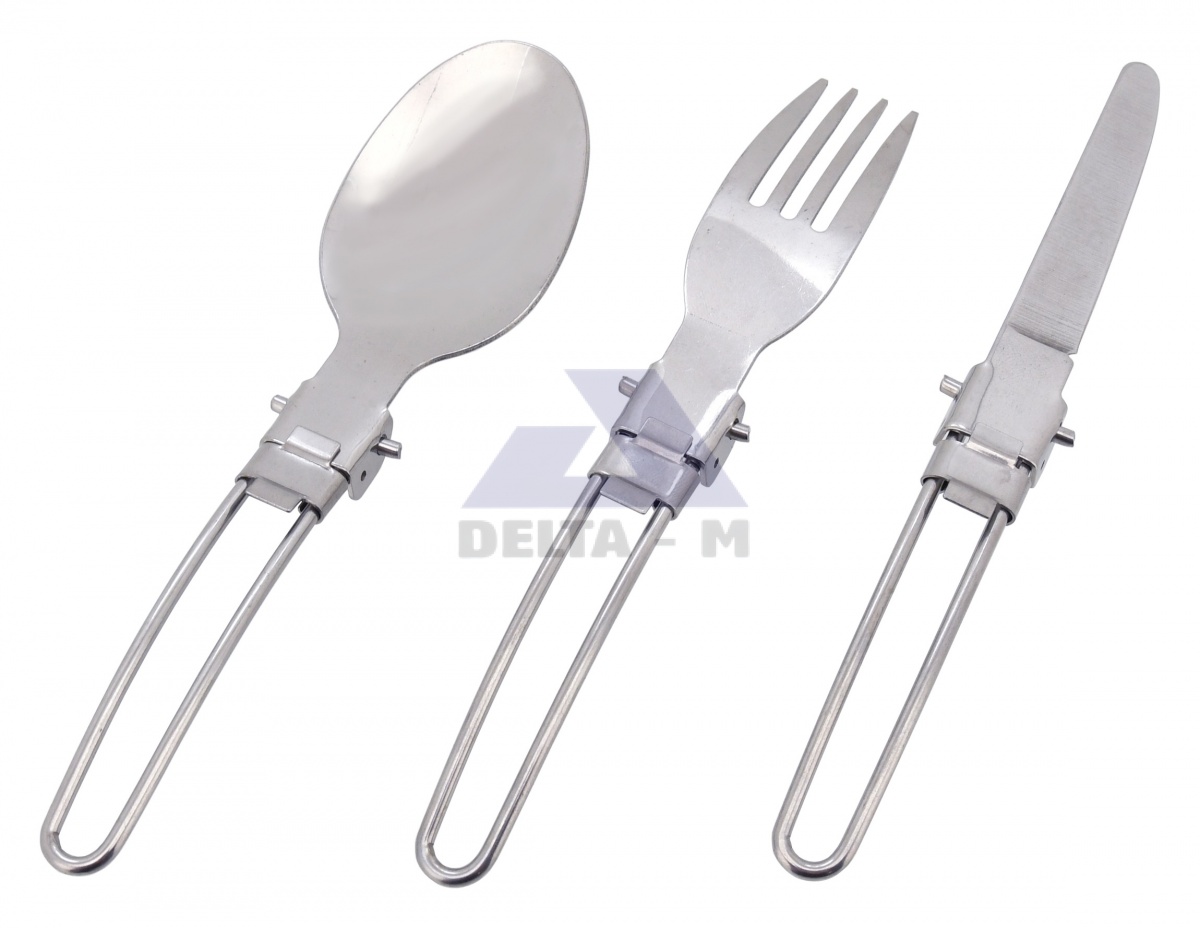 Sada se skládá ze lžíce, nože a vidličky délky 16 cm s celkovou hmotností 80g, uložených v textilním pouzdře s rozměry 8 x 12 x 3 cm.