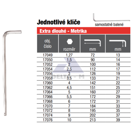 Klíč "L" imbus 1,5mm s kuličkou dlouhý CrV