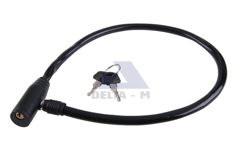 65 cm spirálové lanko z kvalitní oceli Ochranný plášt z PVC Průměr: 8mm Klíče: 2 Váha: 115g.